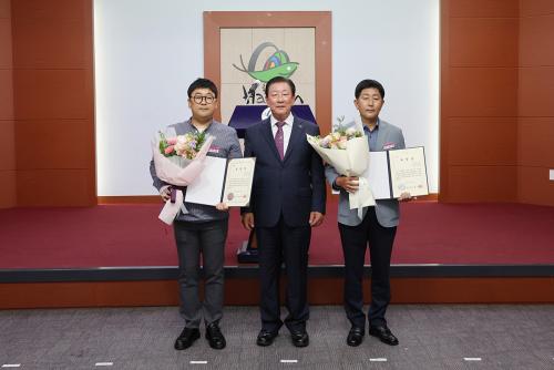 Çõ½ÅÀü·«´ã´ç°ü ¿À±âÅà ÁÖ¹«°üÀº û³âµéÀÌ »ì°í ½ÍÀº ÇÔ¾È, û³âÀÌ È°±âÂù ÇÔ¾ÈÀ» ¸¸µé±â À§ÇØ Àû±ØÀûÀΠû³âģȻç¾÷ ÃßÁø µî Àû±ØÇàÁ¤ ½Çõ°ú ´ë¹Î ÇàÁ¤¼ºñ½º Çâ»ó¿¡ ±â¿©ÇßÀ¸¸ç, Áֹκ¹Áö°ú ±èÁøÈ£ ÁÖ¹«°üÀº Àϼ± ÇöÀå¿¡¼ ¾î·Æ°í ¼Ò¿ÜµÈ ÀÌ¿ôÀ» À§ÇØ Ä£Àý°ú ºÀ»çÀÇ ½Å³äÀ» °®°í ´ë¹Î ºÀ»çÇàÁ¤ ½Çõ¿¡ ÃÖ¼±À» ´ÙÇÑ Á¡À» ÀÎÁ¤¹Þ¾Æ ÀÌ´ÞÀÇ Ä£Àý °ø¹«¿øÀ¸·Î ¼±Á¤µÆ´Ù.