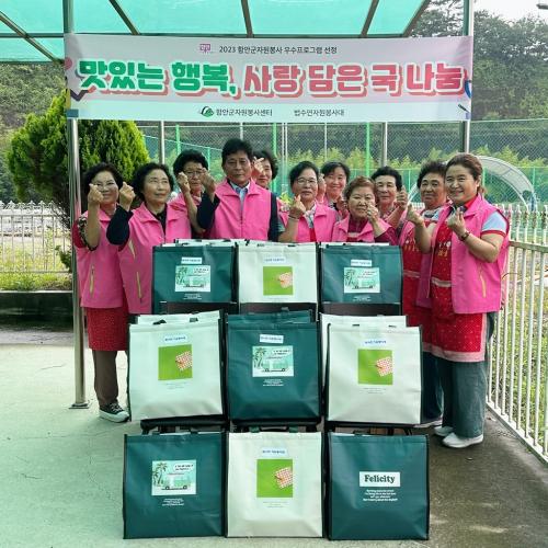 ¹ý¼ö¸éÀÚ¿øºÀ»ç´ëÀÇ ±¹ ³ª´® Ȱµ¿Àº 2023³â ÇԾȱº ÀÚ¿øºÀ»ç¿ì¼öÇÁ·Î±×·¥ °ø¸ð»ç¾÷¿¡ ¼±Á¤µÆÀ¸¸ç, ¹ý¼ö¸é ³» Àú¼Òµæ ¹× ¾î·Á¿î ¼¼´ë 20°¡±¸¸¦ ´ë»óÀ¸·Î ¸Å¿ù 1ȸ, ÃÑ 5ȸ Ȱµ¿ÇÑ´Ù.